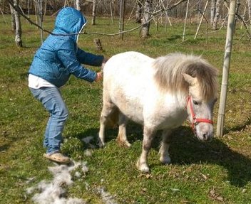 これらの写真は金山りんご園さんのTwitterなどで見ることができるのですが、くーちゃんのこんなポニーな一面も。