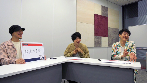 ―― メンバーのキャッチフレーズを考えていただきたいなと・・・(金澤→山内、山内→加藤、加藤→金澤)イメージとしては「ボキャブラ天国」風に。笑いをとりにいかなくても大丈夫です。