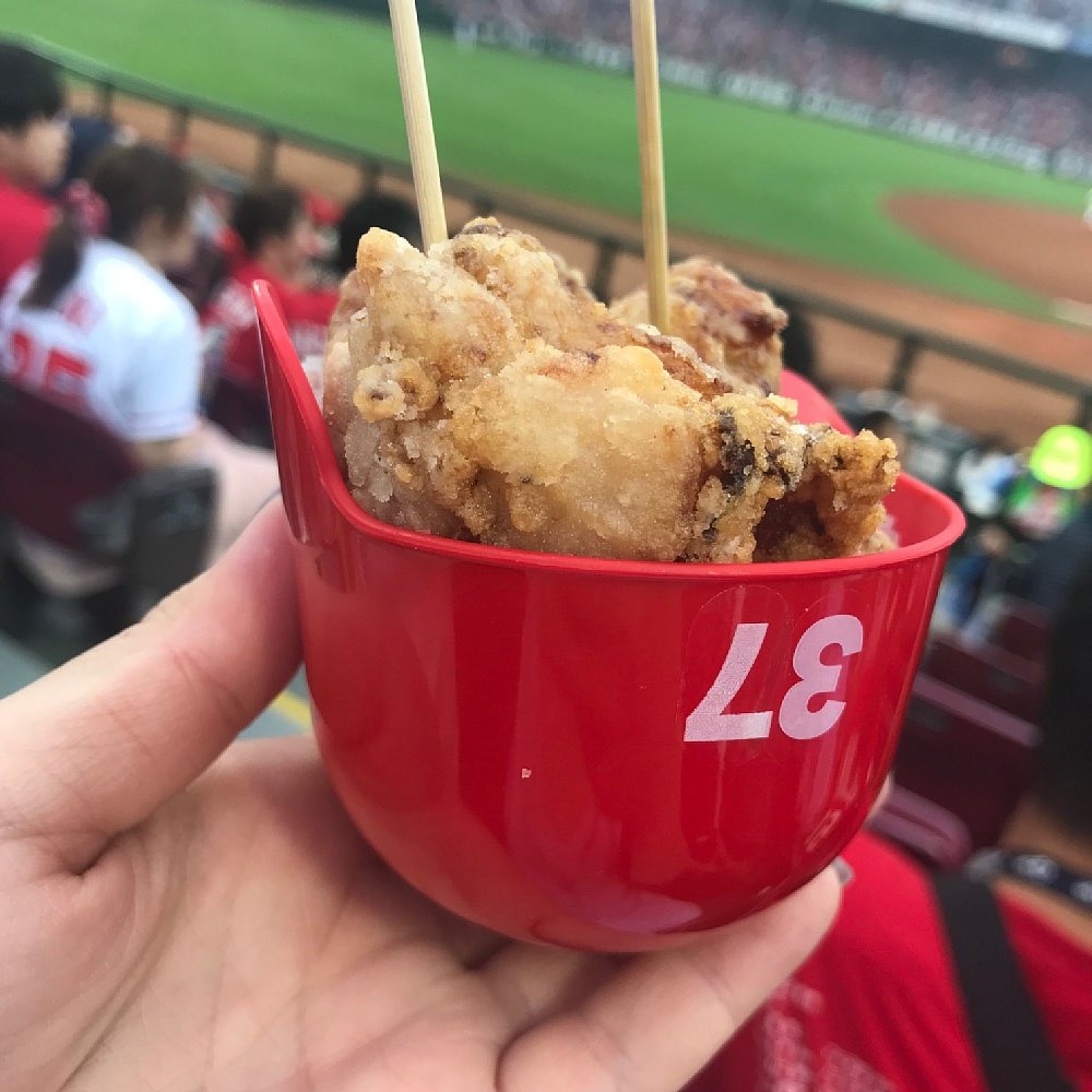 さっくさくと軽く、お腹がいっぱいでも食べられてしまう唐揚げです。食べ終わった後の赤ヘルはお家に持って帰りましょう。朝食の際のヨーグルトを入れたりしても良いし、失くなりやすいピアスや指輪などの小物入れにもおすすめです。