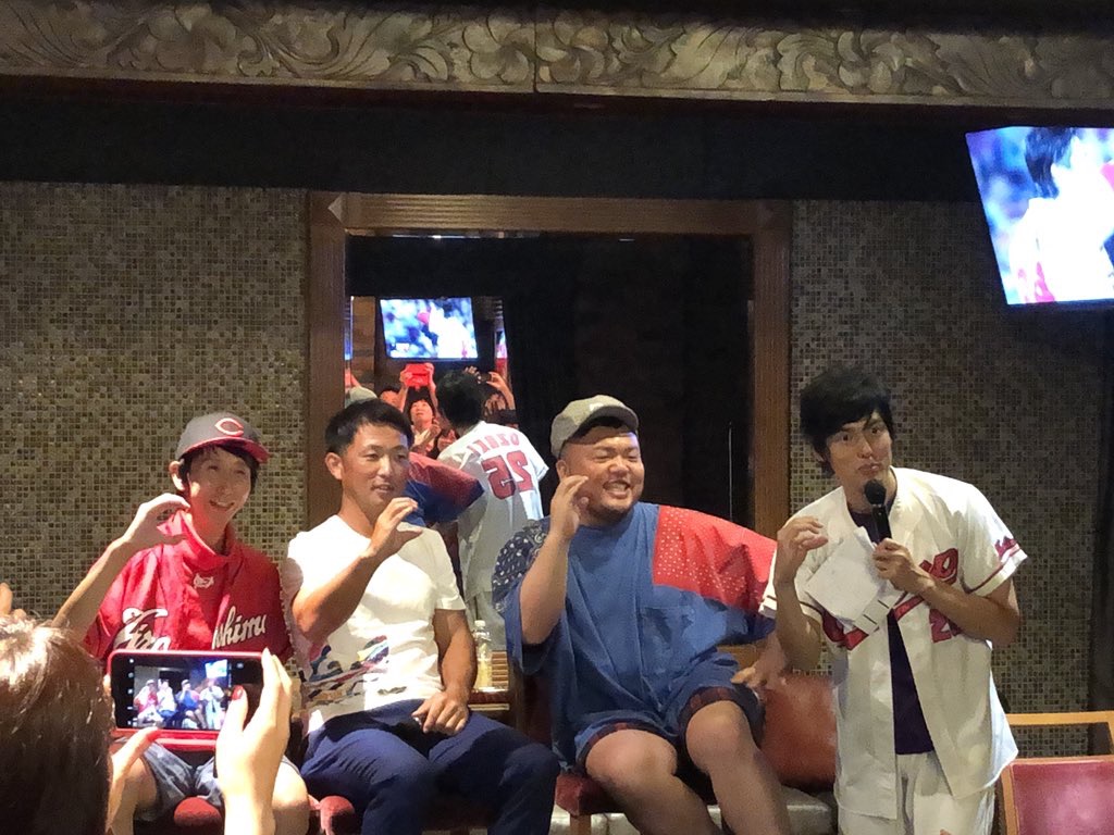 アンガールズ山根さんの今年のグッズマージンへの食いつきや、サプライズできたHIPPYさんの宮島さんの歌で盛り上がり、試合も丸選手の2本のホームランを含む、見事な逆転勝利で会場は爆発的な賑わいとなりました。カープの今年の日本一を期待させる戦いでございました。