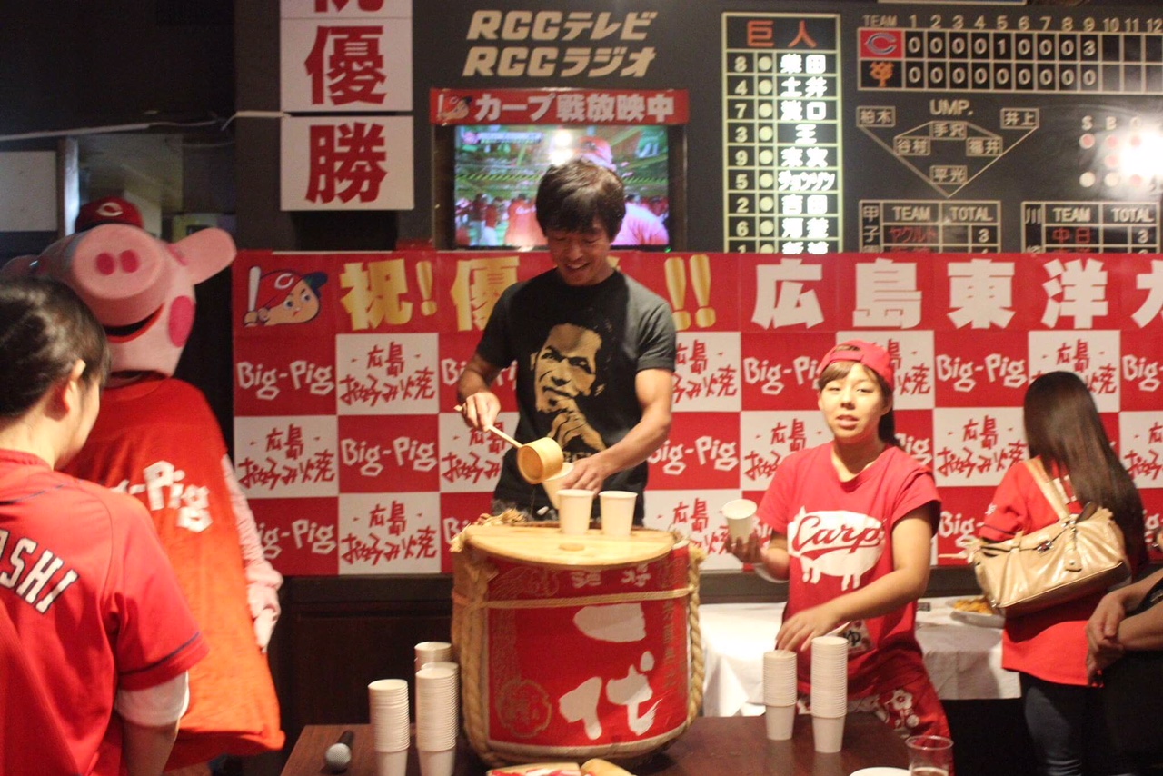 まず、東京でカープ!といえばの代名詞、「Big-Pig 神田カープ」では、優勝の瞬間に鏡開きが行われる。特別な樽酒ということなので、楽しみにしてもらいたい。さらに、毎年恒例の優勝祝賀会が開催されるそうだ。