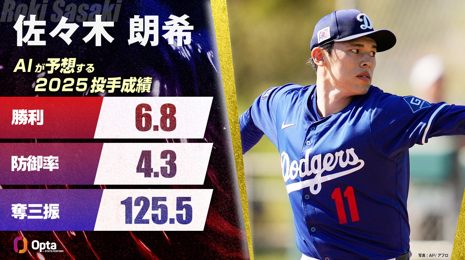 投手として他のスタッツが傑出しているだけに、かえってこの脆弱性が際立ってしまうのかもしれないが、レギュラーシーズンが162試合の長丁場になるMLBに、フィジカルの強度において発展途上にある佐々木が、果たして順応できるかどうかは、間違いなく拭難い疑問符となっている。では、ここで、AIの予測する佐々木のメジャー1年目を見てみよう。