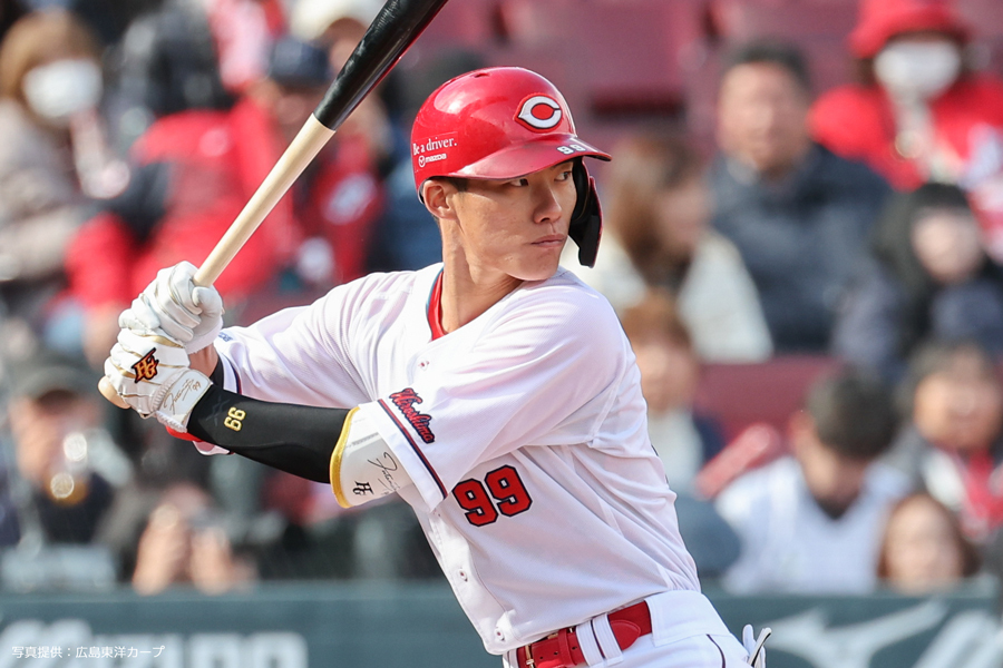 昇格即スタメンとなった20日ヤクルト戦から3戦連続で三塁スタメン出場を続ける。ここまで14打数3安打も、思い切りの良さや打撃内容からも大きな可能性を感じさせる。新井監督も「彼は打撃だけではなく、守る方でも走る方でも攻撃的な選手。どんどん失敗を恐れず、攻めていってもらいたい」と、その潜在能力の高さを認める。