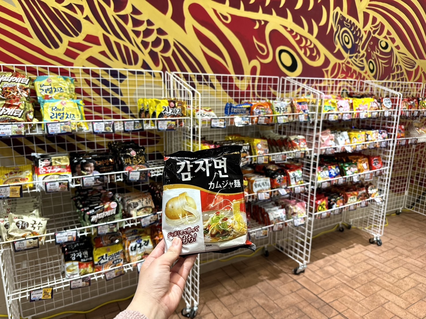ズラッと並ぶ韓国の袋麺