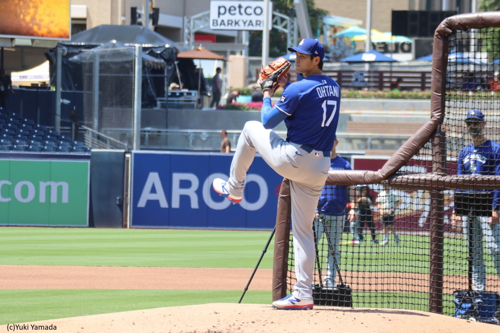 ドジャースの大谷翔平(30)がパドレス戦前に、2023年9月19日に受けた2度目の右肘手術(トミー・ジョン手術)後、3度目となるライブBPに登板した。