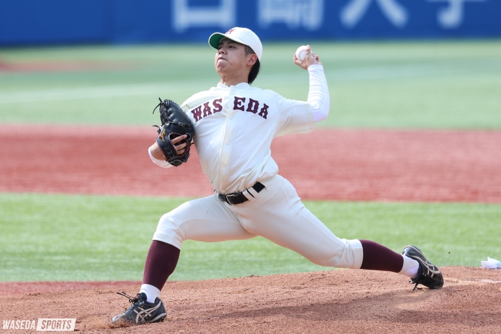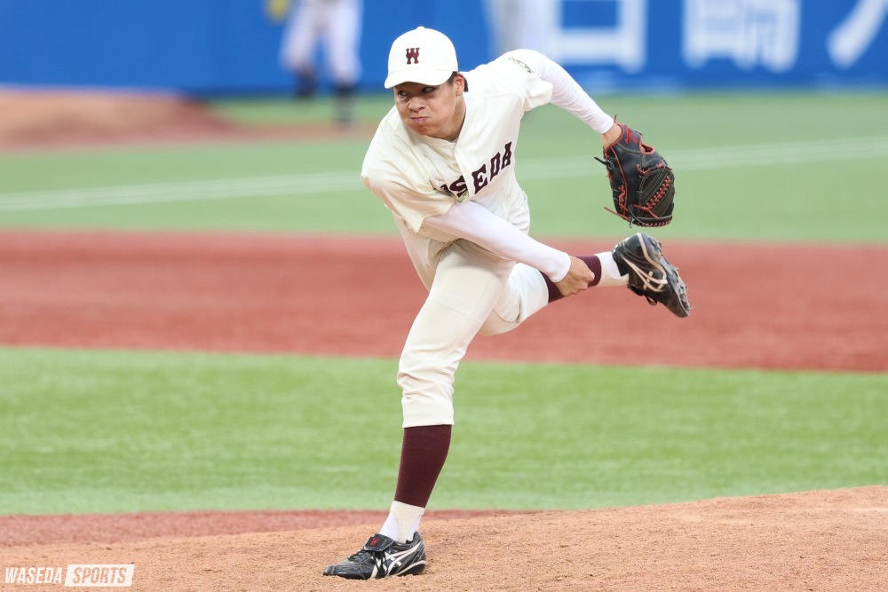 この日の早大の先発は宮城誇南(スポ3=埼玉・浦和学院)。宮城は初回、先頭打者から三振を奪う上々の立ち上がりを見せると、四球こそ与えたものの、無失点でイニングを終えた。