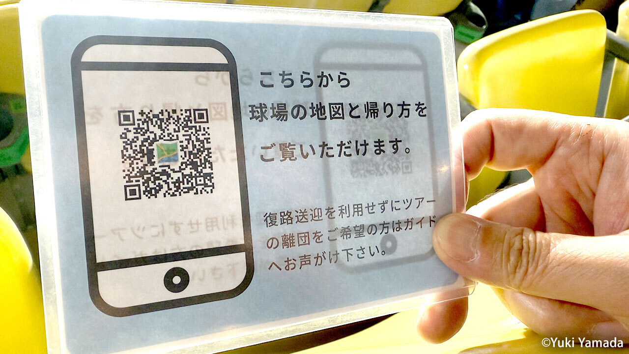 旅に慣れていない日本からの観光客は、何より移動、運転が一番の心配事。だが、JTBツアーなら指定ホテルと球場はバスの送迎付きだ。往路の指定ホテルはドジャースタジアムまで約10分ほどのダブルツリー バイ ヒルトン ホテル ロサンゼルス ダウンタウン。今回は、最大50人乗りの大型観光バスで往復を送迎してもらえた。帰りは試合終了から30分後にバスが出発。各自で駐車場のバスまで集合してください、との案内。え?! 自分で行けるかな? という心配はいらなかった。そこはJTBのきめ細かい配慮があった。行きの車中で座席から、どの通路を通って、どのエレベーターを使い、どの道順でバスまでいけばいいのか。そのすべてを説明&案内する資料をQRコードから読み取ってスマホに保存できる。これで迷子になることも、遅れることも心配なし。