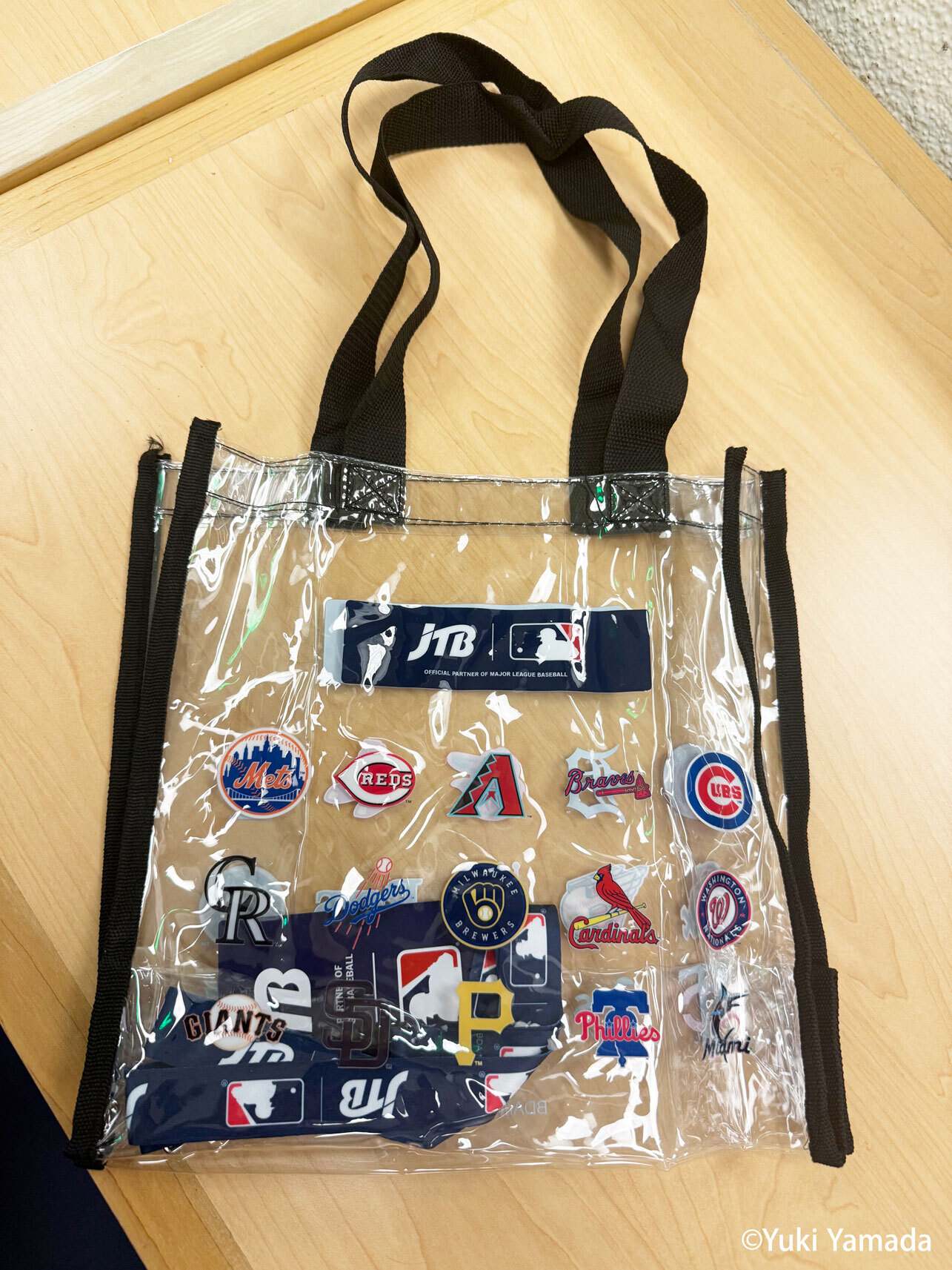 ちなみにツアー参加者には、オリジナルのクリアバッグがもらえる。球場への持ち込み可能バッグはスタジアムの規定で「クリアバッグ」が基本。そして、大きさにも規定がある。JTBツアーに参加して、これを使えばとりあえず問題はなし。安心して、入場することができる。