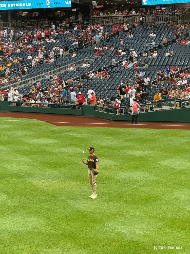 7月19日のナショナルズ戦で先発前の準備をするダルビッシュ