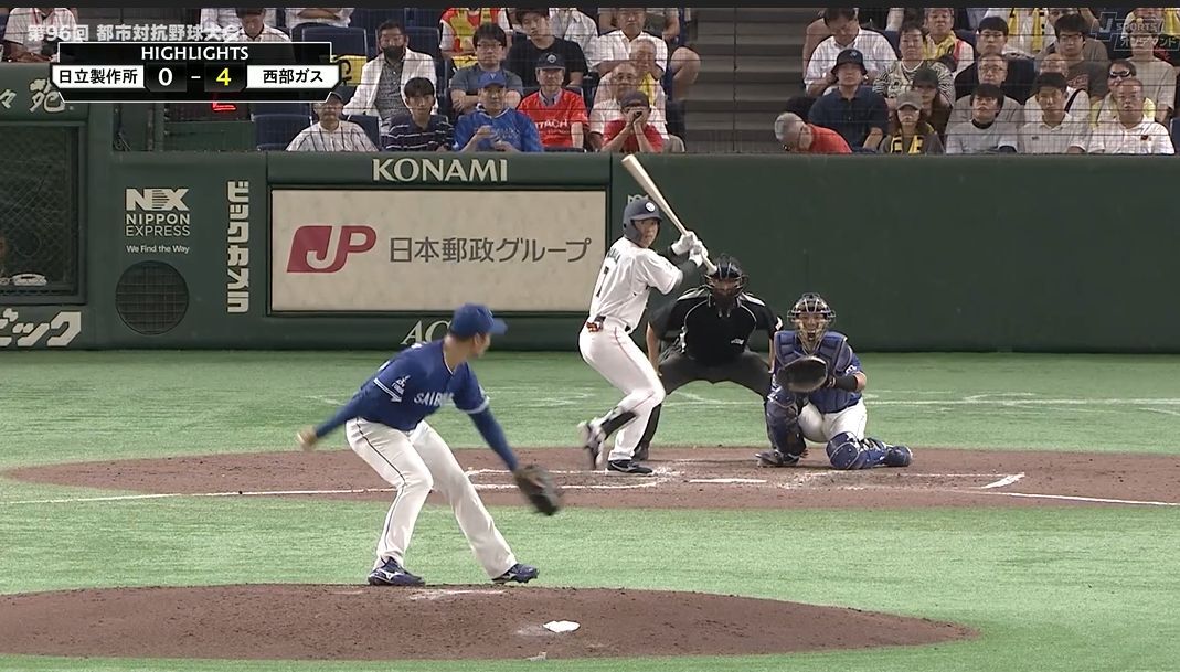 第96回都市対抗野球大会が8月28日(木)に開幕し、決勝は9月8日(月)の開催。9月2日(火)は大会6日目で、今日の第3試合で1回戦がすべて終わる。6日目の第1試合は西部ガス(福岡市/九州第1代表)と日立製作所(日立市/北関東第3代表)の対戦だった。