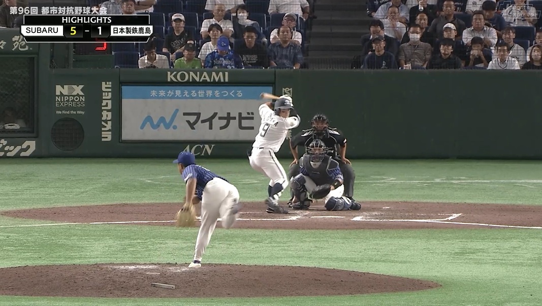 SUBARUは投手陣も2番手・手塚周が5回途中から8回まで無得点の好投。5-1の快勝で、11大会ぶりのベスト8進出を決めている。