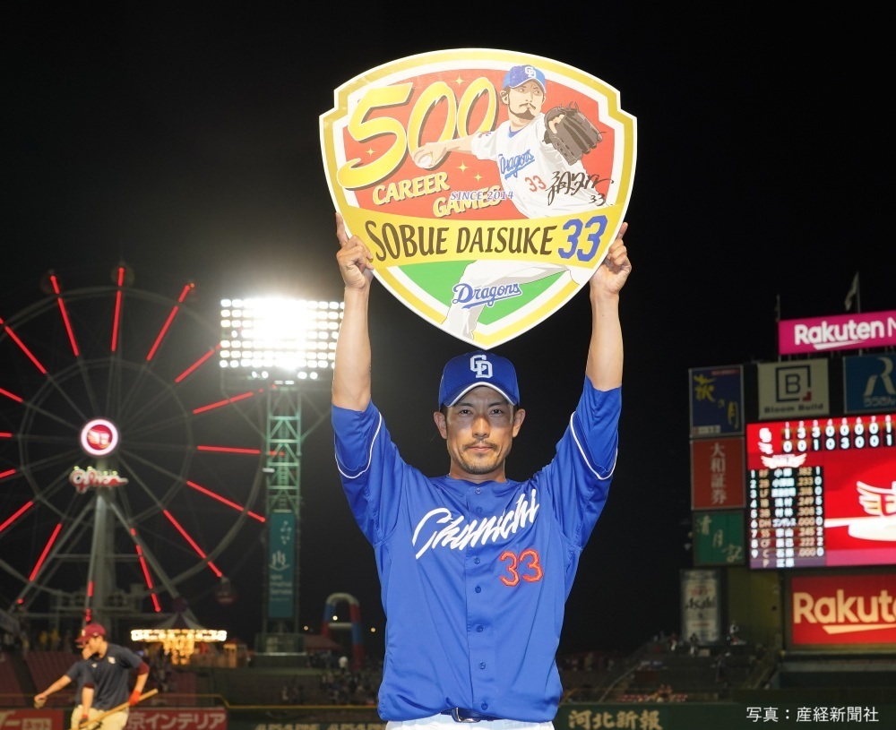 500試合登板を達成した祖父江大輔(ドラゴンズ)