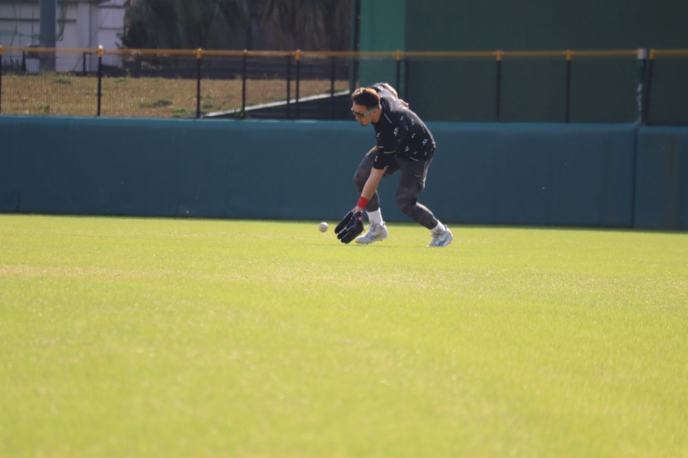 1月の自主トレで守備練習をする鈴木
