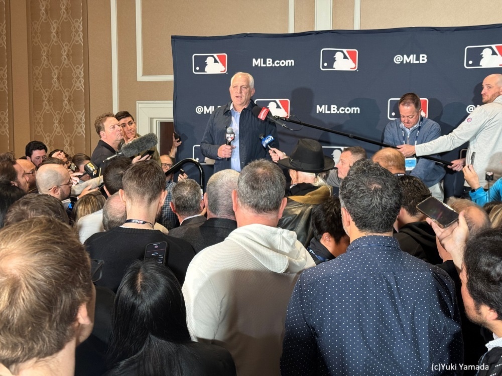 昨年のWMで佐々木朗希の代理人を務めるウルフ氏はメディアルームで会見