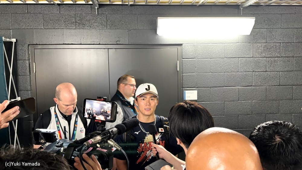 WBC敗退後、取材対応する山本