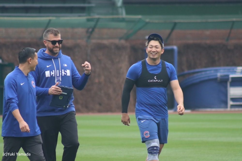 翌日の4月1日には、実戦を想定した走塁練習。ストップ、ゴーで右膝への負担を確認。カウンセル監督とホイヤー編成本部長がみつめ、話し合う姿に誠也復帰を待望している空気が伝わった。