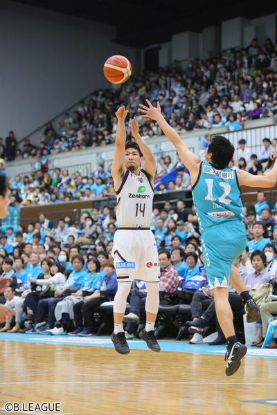 週末は西地区のライバルである京都ハンナリーズに連勝した琉球の中で、岸本は1戦目で13点、2戦目で18点、8アシストをマーク。19点差で快勝した大阪エヴェッサ戦も13点と、スコアリングガードとしての持ち味は十分に果たした。それは、この3試合の3Pシュート成功率が45.5%(10/22)という数字からも明らか。岸本が3Pシュートを3本以上決めた試合で、今季の琉球は13戦全勝。先週は3試合とも3本以上決めて勝利に貢献していることは、チャンピオンシップに向けてのプラス材料と言っていいだろう。