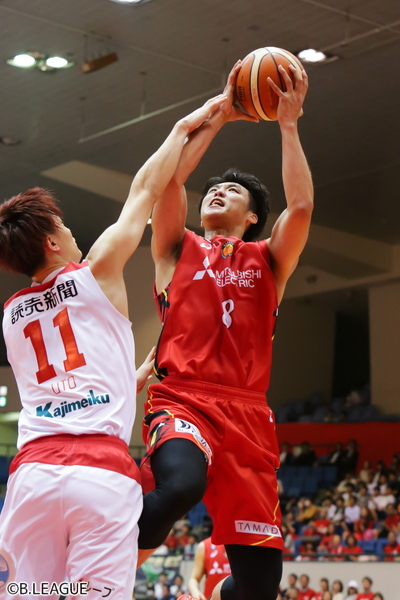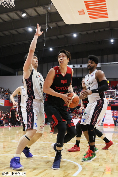 三遠ネオフェニックスとの2連戦では、SFのウェンデル・ホワイトとマッチアップするという難しい仕事をこなした。ディフェンス対応で苦しむ場面もあったが、1戦目で13点、7リバウンド、3スティール、2ブロックショット。2戦でも11点、4リバウンド、2アシスト、1ブロックショットと、攻防両面で堅実なプレーを見せてチームの連勝に貢献。スクリーンをかけた後にアウトサイドに出るピック&ポップでは、着実にジャンプシュートを決めていた。アレックス・カークとのコンビでフロントラインの攻防で優位に立つと、A東京が強さを発揮することを示した週末だった。