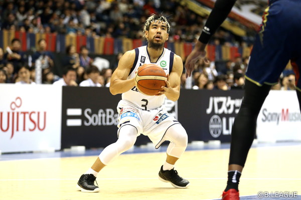 横浜ビー・コルセアーズとの2連戦、23日の初戦は20分46秒間のプレーで13点。ドライブ、ミドルレンジに加え、2Q終了直前にハーフライン付近ではなった3Pシュートがブザービーターになるなど、スコアラーとしての才能を発揮。翌日は一瞬できたスペースを見逃さず、ゴール下でフリーとなっていたジョシュ・スコットに見事なパスを通すなど、今季の自己最多を更新する14アシストを記録。B1トップレベルのプレーメーカーであることを改めて示すようなパフォーマンスによって、B1でトップの平均アシストは7.79本まで上昇した。