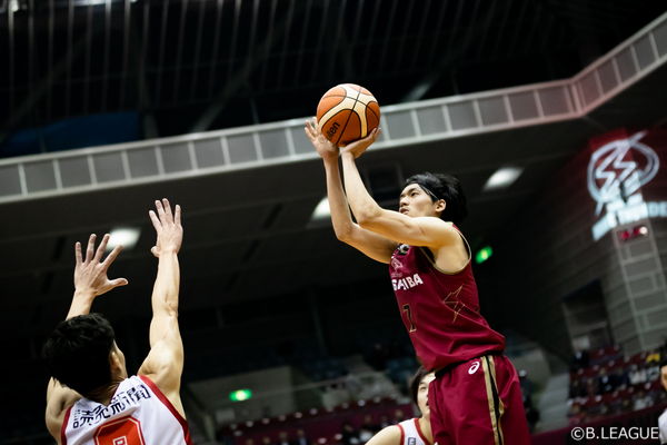 天皇杯のビッグショットから中2日。疲労が蓄積している状況ながらも、3Pシュート4本を含む23点、6アシスト、2スティールという活躍は見事。特に4Qで8本中7本のFGを決めての18点は、千葉ジェッツの大黒柱であるという自信の表れ。天皇杯決勝同様に終盤まで激しい攻防が続いた中で、1点差に詰め寄られた後の4Q残り1分46秒、タフな遠藤祐亮相手にクロスオーバーでスペースを作り、左ウイングから決めた3Pシュートは、栃木の追撃ムードを断ち切る意味もあるビッグショットだった。