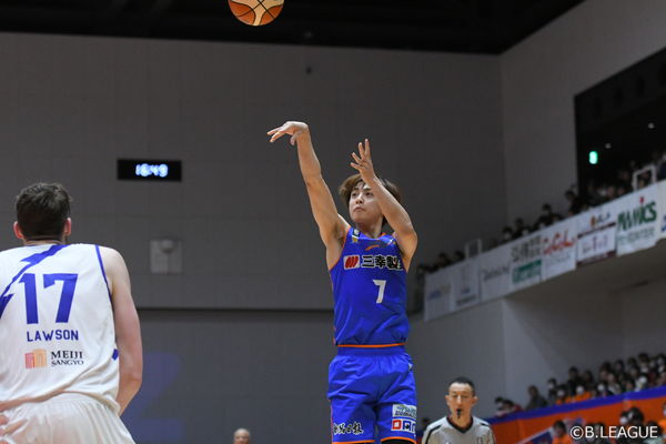 23日のサンロッカーズ渋谷戦は、7本中2本のFG成功の5点に終わった。しかし、マッチアップするベンドラメ礼生を2点に抑え、B1屈指のディフェンダーとしての仕事を成し遂げる。川崎ブレイブサンダースとの2連戦では、スコアラーとして計算できる存在になったことを改めて証明するかのように、1戦目で18点、2戦目で20点を奪って勝利に大きく貢献した。この2連戦に13本中6本決めるなど、今季の3Pシュート成功率45.4%がB1全体で2位。ここ13試合中11試合で2ケタ得点と、質の高いプレーを継続している。