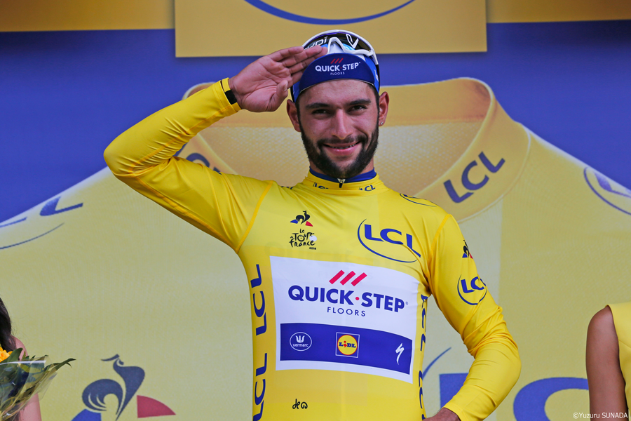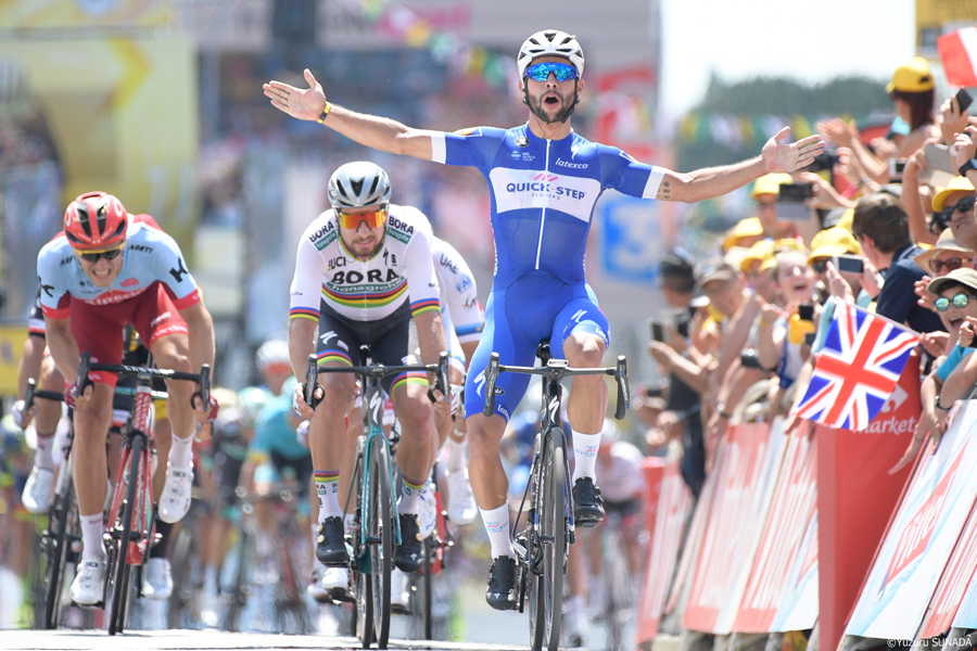 その小さな集団の中に、ラスト1㎞、クイックステップはなんと7人を残していた。2017年グランツールでは16勝を叩きだし、2018シーズンは今大会前までに47勝という大量の勝ち星を手にしてきたベルギーの常勝軍団は、この日も完璧すぎるほどの列車を走らせた。チームメンバーの1人1人が自らの役割を申し分なきまでに勤め上げ、スプリントエースのガビリアを最前列へと押し出した。