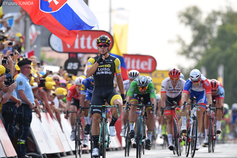 「一部の人たちが、僕は今ツールで勝てない、なんて早すぎる結論を出してしまったんだ。調子はどんどん良くなっていたというのに。この勝利は、そんな彼らに対する答えでもある。明日もまたスプリント勝利の機会があるから、またみなさん(ジャーナリスト)にお目にかかりたいな」(フルーネウェーフェン、公式記者会見より) 区間2勝のガビリアは2位に甘んじ、マイヨ・ヴェール姿のペーター・サガンは3位で終えた。そして4位のアルノー・デマールは、「明日こそは勝つ」とTVインタビューできっぱり断言した。2018年大会も1週目を終えて、いまだフランス人による区間勝利はない。翌第8ステージは7月14日、つまりフランス革命記念日である。☐ ツール・ド・フランス 2018