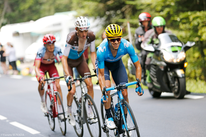 そしてトゥルマレの、山頂まで約10km手前で、ザカリンがアタックに転じた。総合7位ミケル・ランダはすぐに反応し、直後には8位ロマン・バルデも賭けに乗った。さらに遅れてラファル・マイカも追いついてくると、4人は先を急いだ。あらかじめ逃げていた2人のモビスターアシスト役も、1人ずつ牽引役に馳せ参じた。下りで逃げ集団に合流すると、続く2級ボルデール峠へと、マイヨ・ジョーヌ集団に3分半近いリードをつけて上り始めた。
