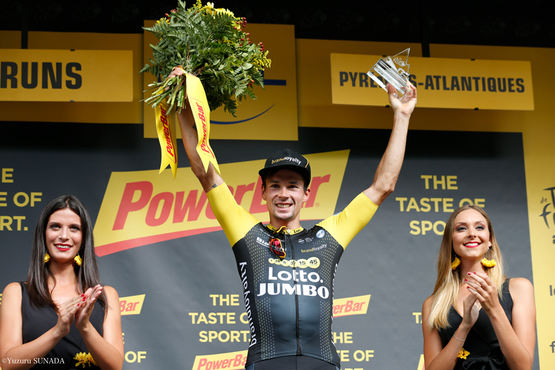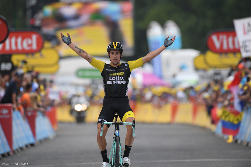 得意のタイムトライアルポジションを崩し、ようやく脚を緩めたのは、フィニッシュラインのわずか20m手前だった。それから両腕を悠々と天に上げた。表彰台では得意のテレマークポーズを披露した元スキージャンパーは、1年前の夏には、スロベニア人として史上初めてツールの区間勝利を手に入れた。今年はスロベニア人として史上初のツール表彰台へと王手をかけた。後続集団をペダルで19秒突き放し、もちろん区間首位のご褒美であるボーナスタイム10秒を収集。つまりフルームに対する16秒の遅れを、13秒リードへとひっくり返した。しかも総合2位デュムランとの差も19秒に詰めた!