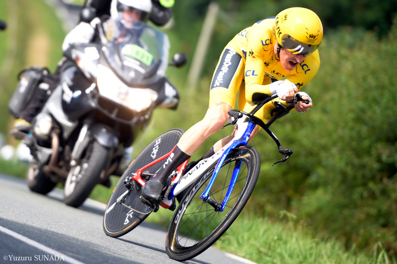現役の個人タイムトライアル世界チャンピオンは、フルームに比べて静かなスタートを切った。5月にピンク色のジャージを巡って激しく競い合ったライバルからは、1つ目の計測地点では3秒、2つ目の計測地点では2秒のビハインドを背負っていた。しかしプロトン屈指のTTスペシャリストは最後の9kmでも決してペース衰えることなく、フルームを追い上げ、そしてぎりぎりで追い越した。