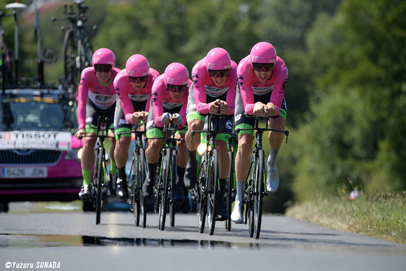 幸い無事に新スポンサーを見つけ、ピンク色で漕ぎ出した2018シーズンは、勝てない苦しさを味わっている。7月末現在でわずか4勝。これは全部で18あるワールドチームの中で、カチューシャと並び最も少ない勝利数である。ちなみにカチューシャがワールドツアー2勝なのに対して、EFはWT0勝。なにしろ昨季から大量10人を入れ替えた代わりに、勝利数アップを期待して新たに獲得したスプリントリーダーの2人、マクレイ&モドロがたったの1勝ずつと完全に不発だ。大きく強化して望んだ石畳クラシックも、やはりセプ・ヴァンマルクが、例年通りひたすら一桁台を量産しただけ。