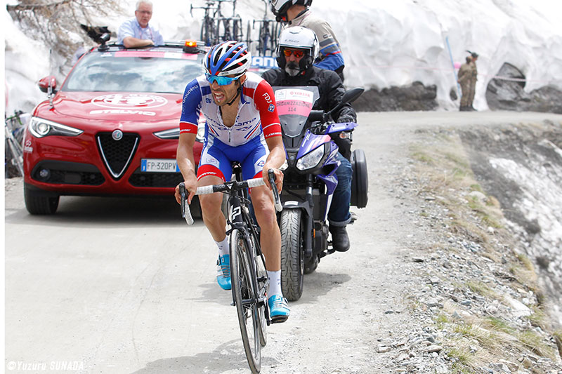 2人目のエースであるティボ・ピノは、グランツール総合ライダーとしての道を突き進む。しかも2014年のツールを総合3位で終えて以来、同年代の祖国のライバル(バルデ)とは違い、マディオの手により積極的に外国への武者修行に送り込まれた。おかげで昨夏ジロは総合4位に食い込み、この5月は体調不良により最終日不出走に終わったものの、閉幕2日前までは総合3位につける奮闘を見せた。一方で祖国の大会では少々失敗続き… … (2015年16位、翌2年は途中棄権)。ただ今年限りでジロ参戦を一旦打ち止め、2019年夏からは、ひたすらツール総合争いのみに全身全霊で取り組むと宣言する。