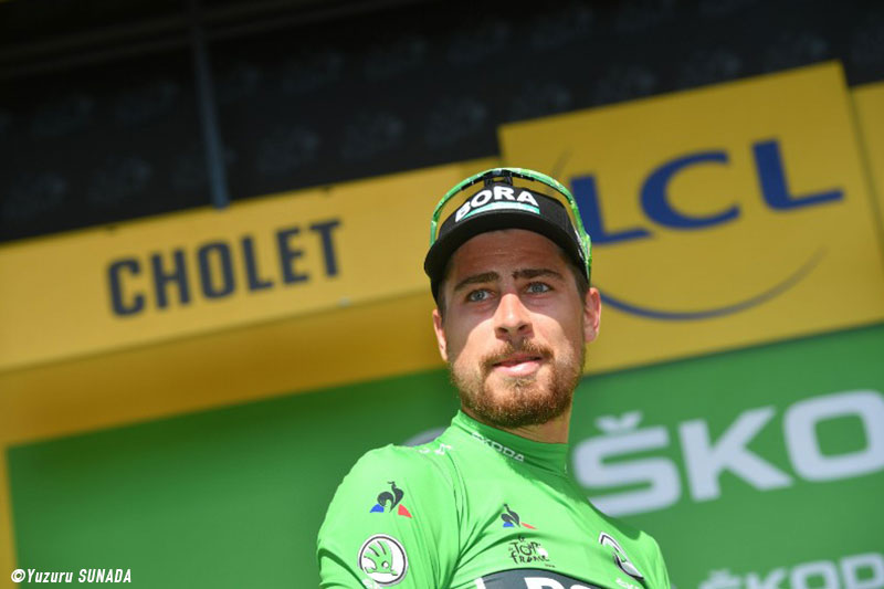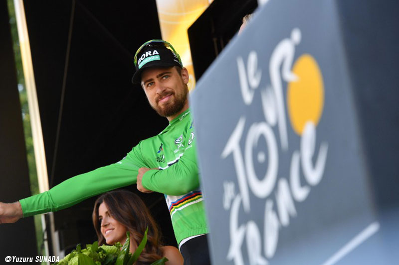 今季もサガンはエースとして責任を果たし続ける。4月にはチームに初のモニュメント勝利(パリ~ルーベ)をもたらした。残念ながらカリフォルニア一周で9年連続の区間勝利はならなかったが、代わりに昨季は失望に終わったツールで(4日目の大会追放処分で、6年連続マイヨ・ヴェール獲得ならず)、区間3勝と人生6枚目の、つまりは史上最多タイとなるマイヨ・ヴェールを持ち帰った。