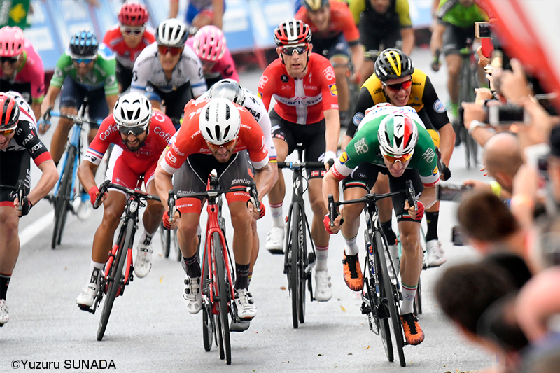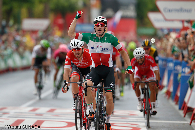 ジャコモ・ニッツォーロやサガンの追い上げをかわし、緑白赤のイタリアチャンピオンジャージが拳を天に突き上げた。2012年大会以来2度目のブエルタ挑戦で、初めての区間勝利をもぎ取った。また2018年だけでスプリント15勝目(+総合1勝)を叩き出し、所属チームのクイックステップにはシーズン58勝目を献上した。