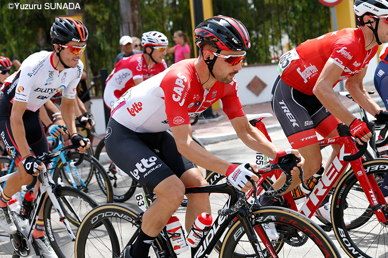 後方プロトンに残るチームエース、ペーター・サガンのために、それまで一切協力の姿勢を見せなかったペストルベルガーが、いよいよ先頭交代に加わり始めた直後だった。残り23.5km。鮮やかな加速と共に、下りへと勢い良く飛び込んだカンペナールツが、右カーブでアスファルトへと滑り落ちた。