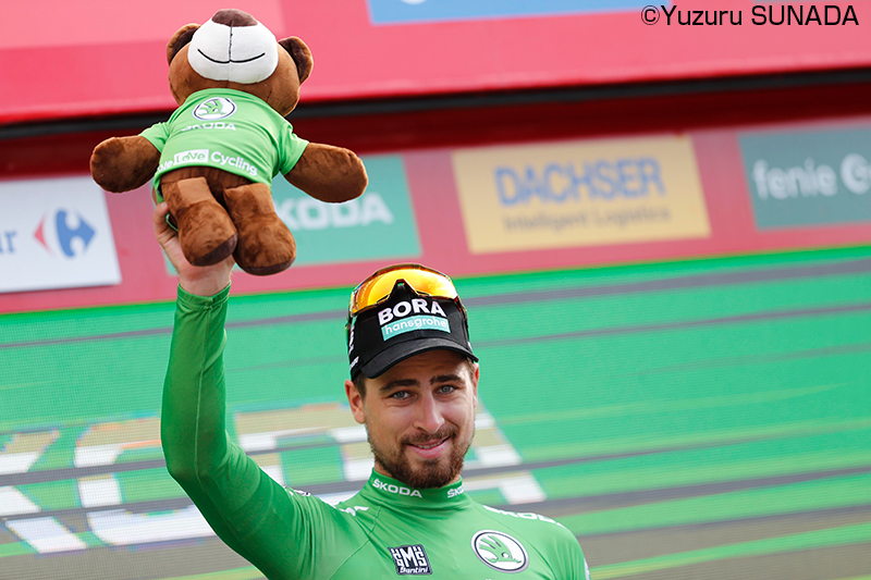 サガンは今大会3回目の区間2位に「まあこんなもんさ」と肩をすくめつつ、見慣れた緑のジャージに袖を通した。ツールでは過去6回持ち帰ってきたポイント賞だが、「ツールと違ってブエルタは山も平地もポイント配分が同じだからなぁ……」と、ブエルタのジャージ保守に関しては消極的。2位バルベルデとの差はわずか2ptしかない。