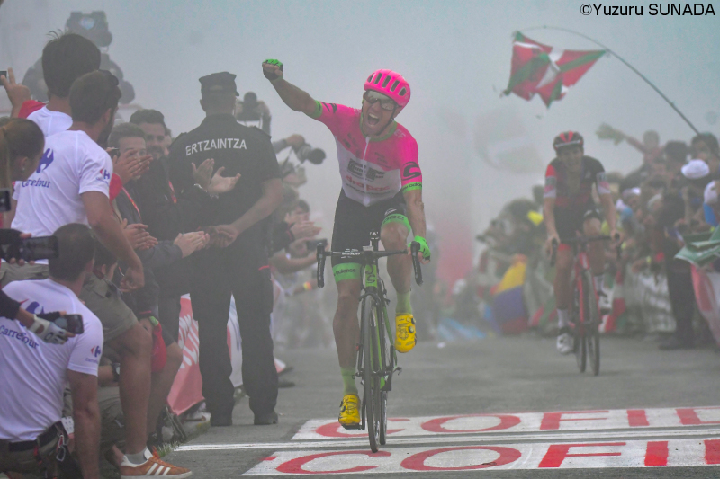 人生における長く苦しい試練を乗り越えてきたマイケル・ウッズが、まるで責め苦のような激坂に打ち勝って、喜びを手につかんだ。深く濃い霧に紛れて、マイヨ・ロホを追い求める者たちもまた、死闘を繰り広げた。38歳大ベテランと23歳若者が驚異的な好調さを証明し、マイヨ・ロホは頼もしいチーム力を見せつけた。