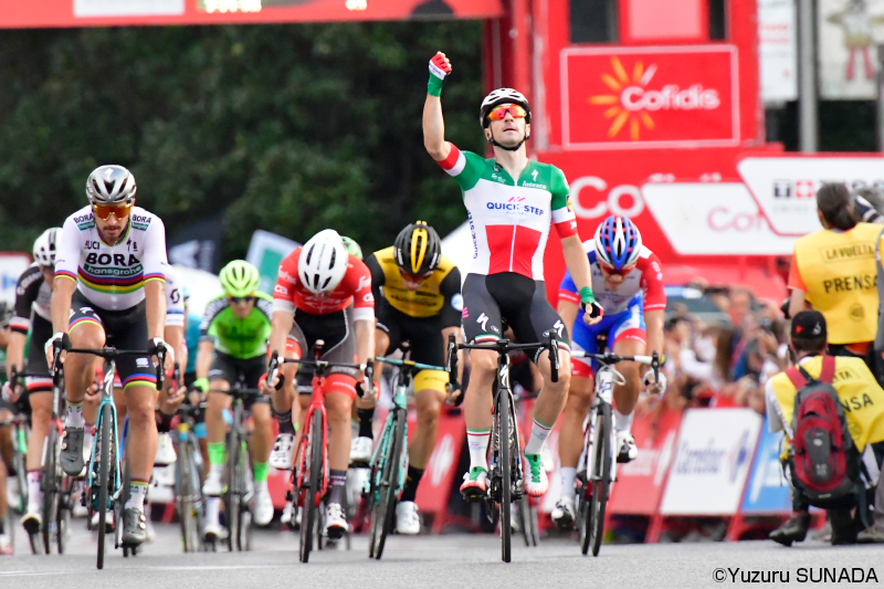 ヴィヴィアーニ本人にとっては今ブエルタ区間3勝目。今ジロの4勝を加えると、2018年グランツールだけで通算7勝を手に入れたことになる。もちろん所属チームのクイックステップはジロ4勝+ツール4勝+ブエルタ4勝=12勝目の大量勝利を叩き出し、年間通算勝利数は67に達した。1ヶ月平均8勝で、2018シーズンが残り1ヶ月だから……75勝まで伸ばせるだろうか?ちなみに過去10年の年間最多勝利数は、2009年コロンビアHTCの85勝である。