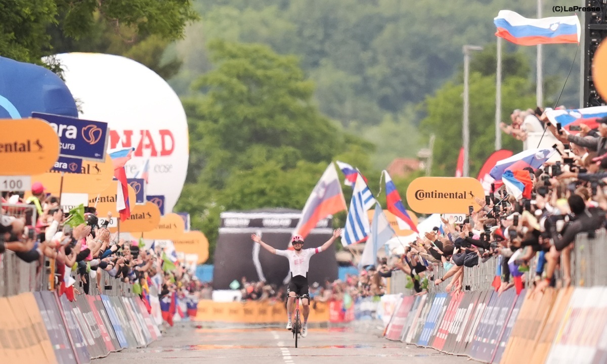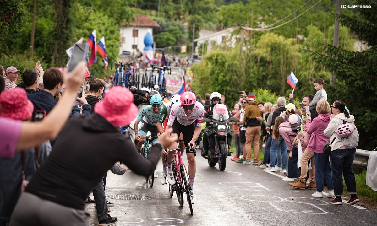 スロベニア側には、直角コーナーが多く、濡れた路面で誰もが苦しめられた。それでもこの日最後の山を上り、うねる下りを冷静にこなすと、残り6kmでついに15秒差にまで追い詰めた。