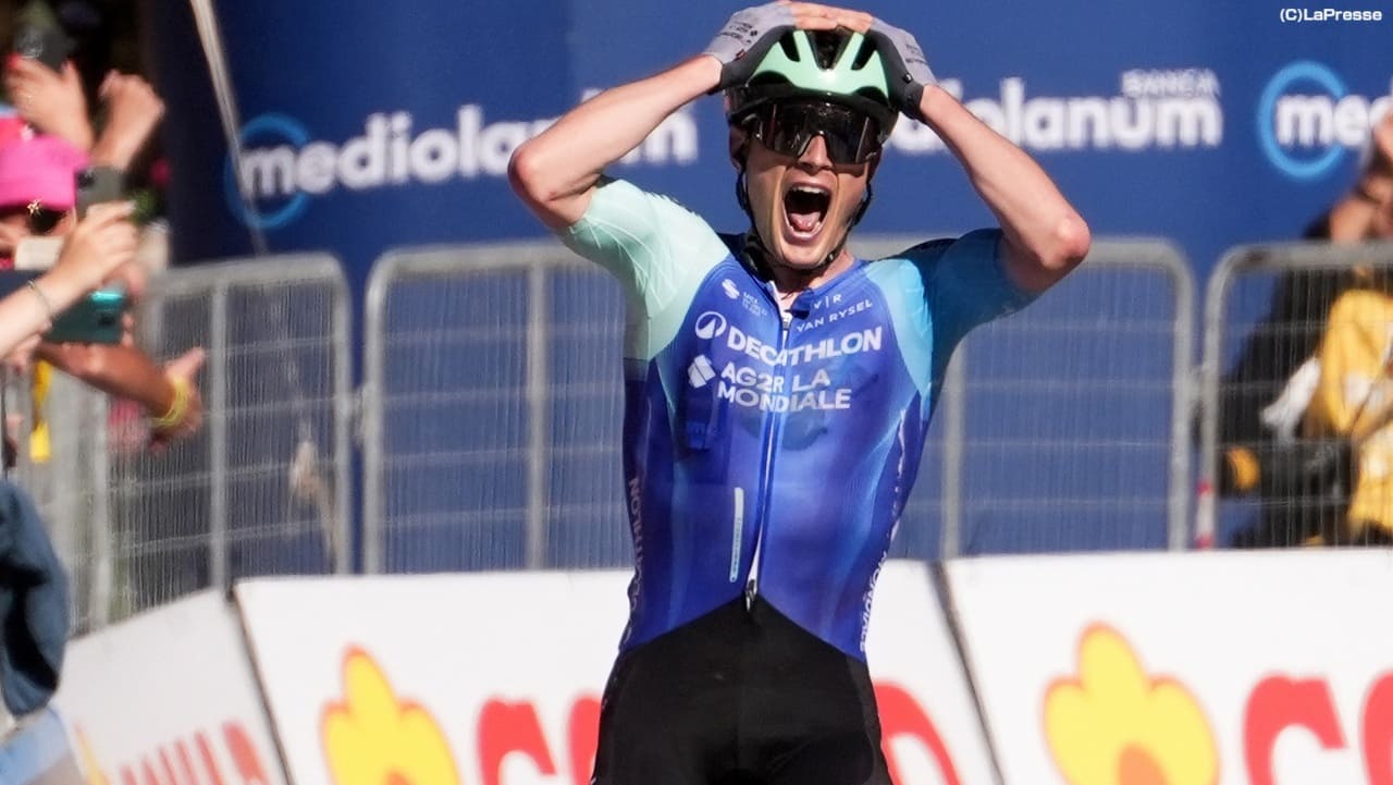 第108回ジロ・デ・イタリアは2025年5月30日、ビエッラ〜シャンポルク間の166kmで第19ステージが行われ、デカトロン・AG2Rラモンディアルのニコラ・プロドム(フランス)が初優勝。総合成績では首位のマリア・ローザを着るイサーク・デルトロ(メキシコ、UAEチームエミレーツ・XRG)がEFエデュケーション・イージーポストのリチャル・カラパス(エクアドル)の連続アタックを封じ込めて区間2位でフィニッシュ。ボーナスタイムを獲得し、ライバルとの差をさらに開いて初の総合優勝に近づいた。