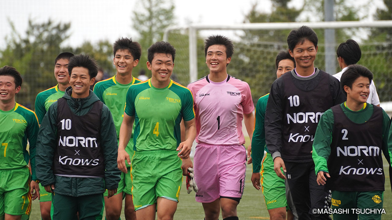 スコアはそのまま1-0で終了。帝京長岡は7試合目にして初めてのクリーンシートを記録し、同時に連勝も達成。試合後にはスタンドから声援を送り続けたチームメイトたちとともに、歌い、飛び跳ね、笑顔で勝利の歓喜に酔いしれた。