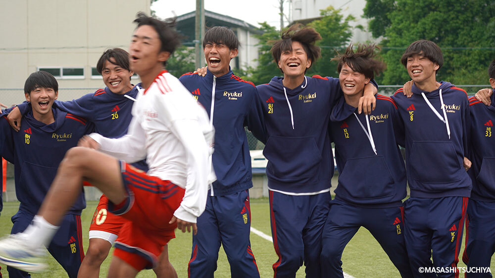 追い込まれた青森山田も終盤に掛けて圧力を強めるも、廣瀬煌と大徳剛矢のセンターバックコンビを中心に、最後まで流通経済大柏の堅陣は崩れない。「今日の勝利は大きいですね」と笑顔を見せたのは榎本雅大監督。終わってみれば今季初の逆転勝利。試合後は部員全員で輪を作り、歌い、踊り、飛び跳ね、いつものグラウンドに最高の歓喜を弾けさせた。