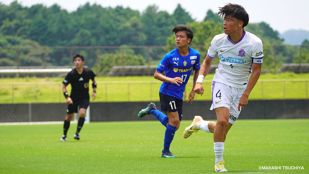 プレミアリーグWEST第5節。広島ユースは静岡学園高校と対峙するアウェイゲームに臨んでいた。前節でガンバ大阪ユースに0-3と完敗を喫し、必勝を期して挑む一戦。試合が始まると、3バックの中央でチームメイトに声を掛け続けている、白いユニフォームの4番に目が留まる。