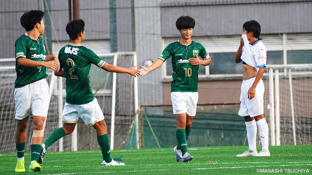 立ち上がりは上々だった。「結構良い入りができたと思います」と話すのは、3バックの左センターバックを務めながら、もともとはネイマールが大好きだという“ドリブラー”属性を持つ中村宗士朗。8分に今井健人が上げたクロスは、相手の手に当たってPKを獲得。エースの仲山獅恩がゴール左上の凄まじいコースにキックを突き刺し、幸先良く先制点を奪う。