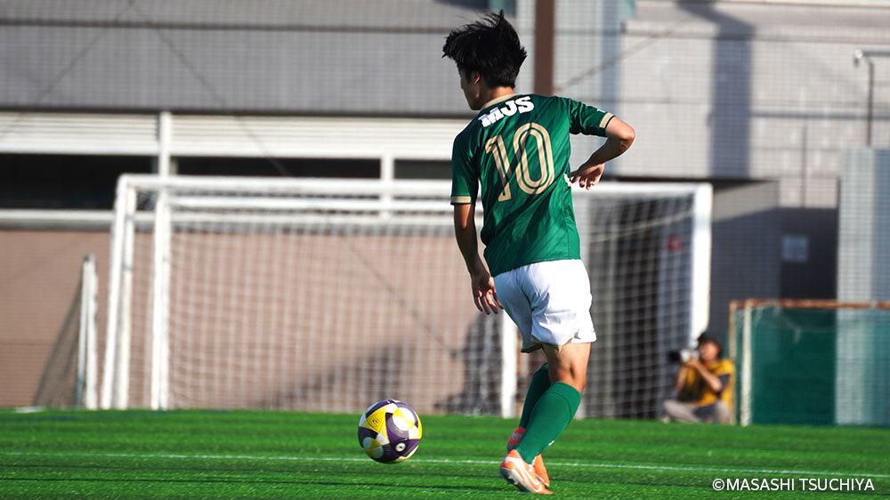 ホームで川崎U-18を迎え撃った第12節。開幕戦で逆転負けを喫した相手に、仲山は前半の内に2得点をゲット。チームは2点をリードした後半に退場者を出し、打ち合いの末に3-3と引き分けたものの、これで4戦連発となった背番号10は、いつも通り、淡々と、冷静に、言葉を紡ぐ。