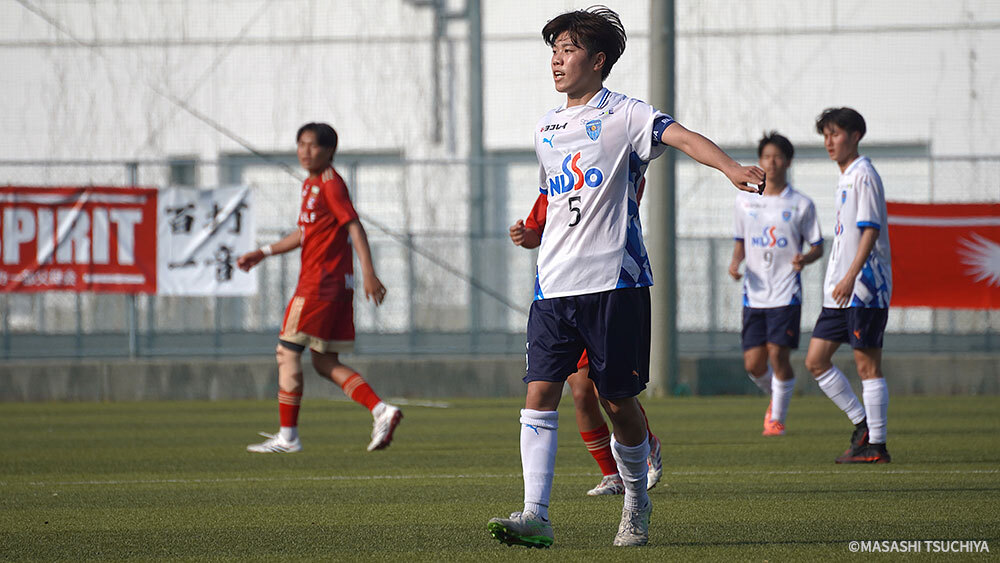 ホームゲームを戦う横浜FCユースで注目したのは、前述したように今季のキャプテンを託されている椿渥裕だ。去年もプレミアで実戦経験を積み上げ、「横へのスライドとか、運動量とか、ボールを取り切るところは結構できていたので、それを今年はもっとやっていかないといけないのかなと思います」と一定の手応えを携え、新シーズンへと意気込んでいる。