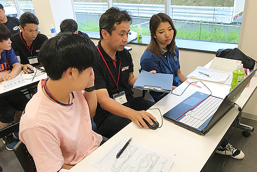 14歳から参加することができ、申し込み、書類選考を経て、当日集まった若きドライバー達は12名。その4倍以上の申し込みから選ばれしヤングガン。その内女性一名。4日間のプログラムは、4輪運転経験の無い参加者もいるので、初日は、コクピットドリルから、シフトチェンジの方法、クラッチミートの方法、データロガーの読み方などなど、初歩的な説明から始まって、二日目、三日目とコースレイアウトを変えて、走行セッションを繰り返して、講師陣の評価、データロガーを見ながら講師からのアドバイス。四日目には、学んだことの集大成として、予選、決勝を行なって、スカラシップを獲得するドライバーを選出する。しかし、決勝結果だけでスカラシップ選定は行われない。最終的には、スタッフ、講師陣の討議によって決定されるという。