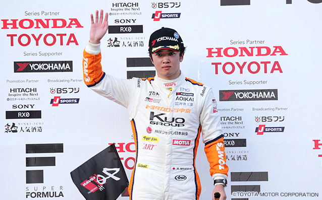 ふっくらとした頬。ちょっと口を尖らせながら、実に言葉を選びながらコメントする19歳、宮田莉朋選手。レーシングカートで多くのチャンピオンを獲得、2015年から4輪レースにも参戦。2016、2017年とFI-F4選手権を連覇。F3は、今年2年目。第6戦富士、第7戦岡山で勝っている。