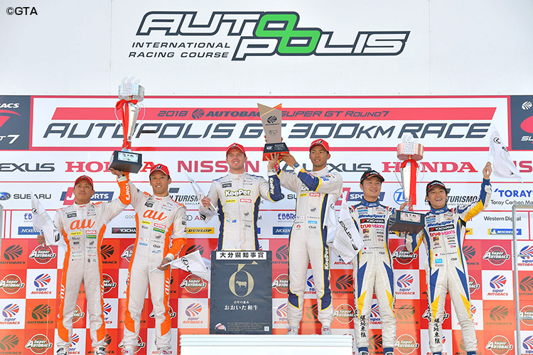 そして、その40周目にはアクシデントも発生。高木真一と代わった直後の、ARTA BMW M6 GT3のウォーキンショーと接触した坪井がスピンを喫し、順位を落としてしまったのだ。その後、HOPPY 86 MCはやむなくピットに戻って、無交換だったリヤ2本のタイヤを換えたことから、完全に入賞圏から離れてしまう……。 逆にトップで折り返したK-tunes RC F GT3は好調そのもの! チェッカーまでアクセルを緩めず走り続けて、第3戦・鈴鹿に続く今季2勝目をマーク。これで新田は最多勝タイとなる通算20勝目を挙げることとなった。2位はリーガルフロンティアランボルギーニGT3が獲得し、3位はModulo KENWOOD NSX GT3が獲得し、4位はARTA BMW M6 GT3。その結果、高木とウォーキンショーはランキングのトップを守ったばかりか、貯金をさらに増やすこととなった。