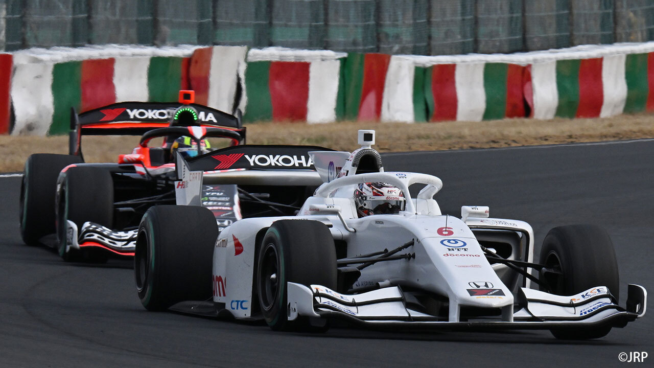 これでトップ争いは岩佐歩夢(TEAM MUGEN)と太田格之進(DOCOMO TEAM DANDELION RACING)の一騎打ちに。お互いにオーバーテイクシステムをどこで使うかがキーポイントとなった“一進一退”の攻防戦となった。